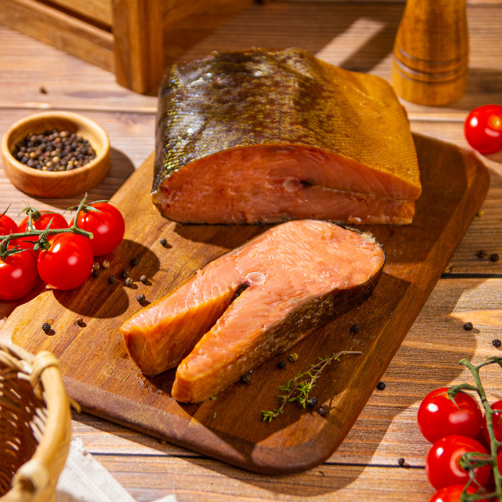 Ценное красное мясо горбуши сохранило богатый состав витаминов, аминокислот и незаменимых полезных жиров Омега-3 и приобрело аппетитный аромат натурального копчения.