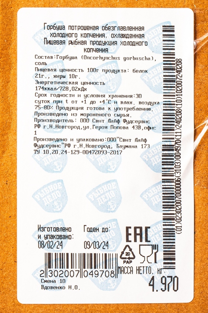 Горбуша Рыбное Дело Холодного Копчения 4,5кг