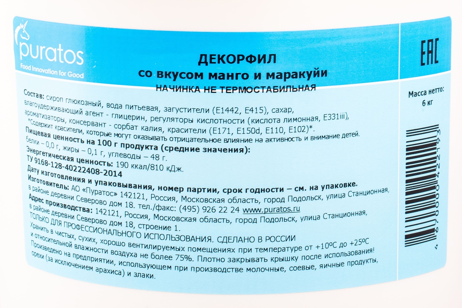 Начинка не Термостабильная Декорфил Манго Маракуйя Пуратос 6кг