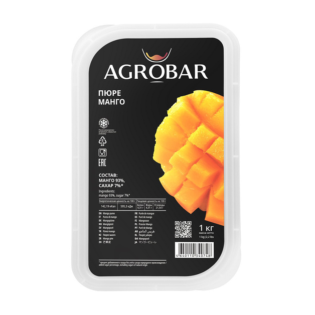 Пюре Agrobar из мякоти манго — это ароматный и сладкий фруктовый десерт, который станет идеальным дополнением к вашим блюдам. Оно придаст неповторимый вкус и аромат тортам, мороженому, сорбетам и другим десертам. Используйте пюре для создания фруктовых соусов или в качестве начинки для выпечки.