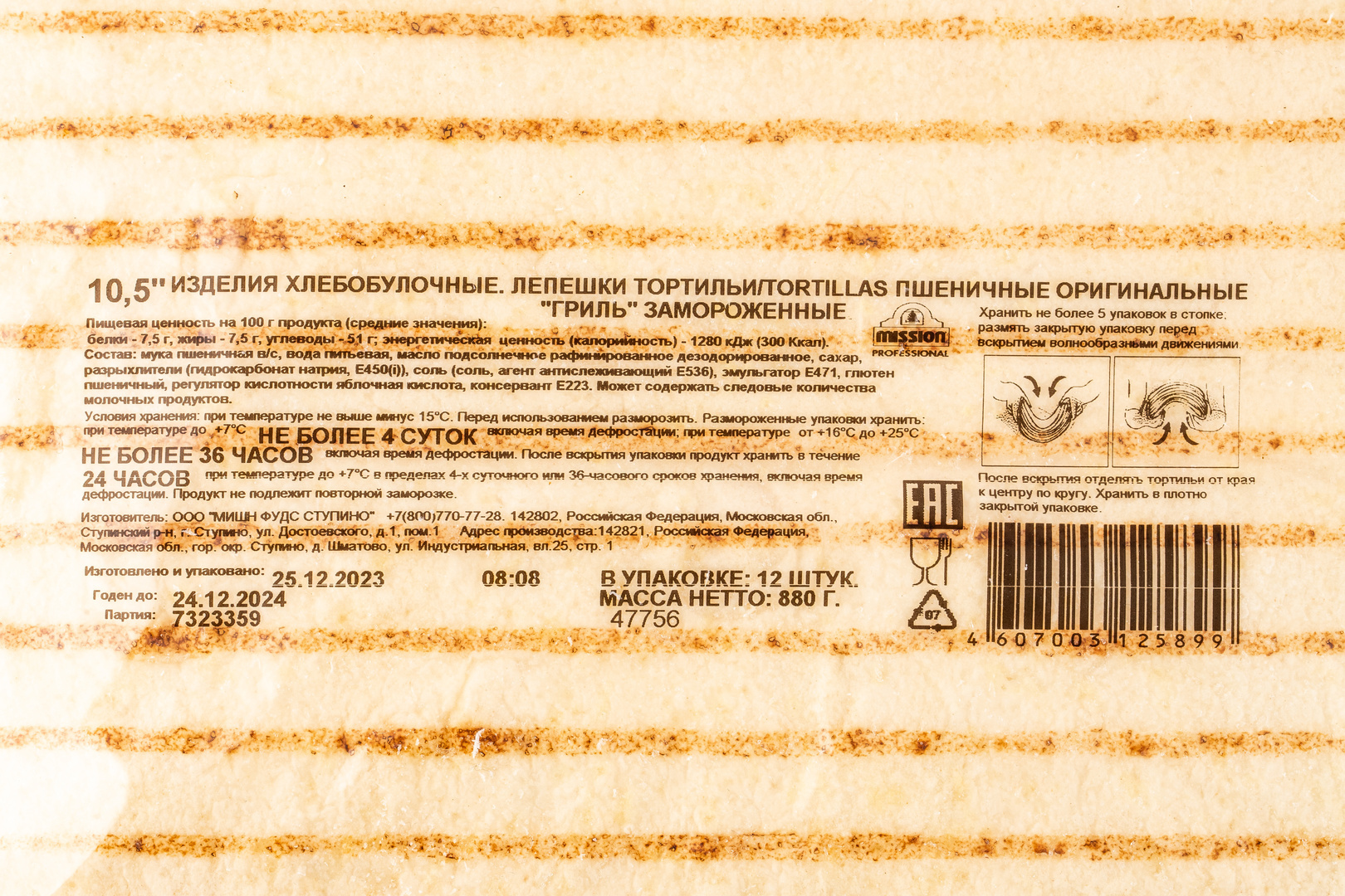 Тортилья Пшеничная Mission Professional Гриль 26см 12шт