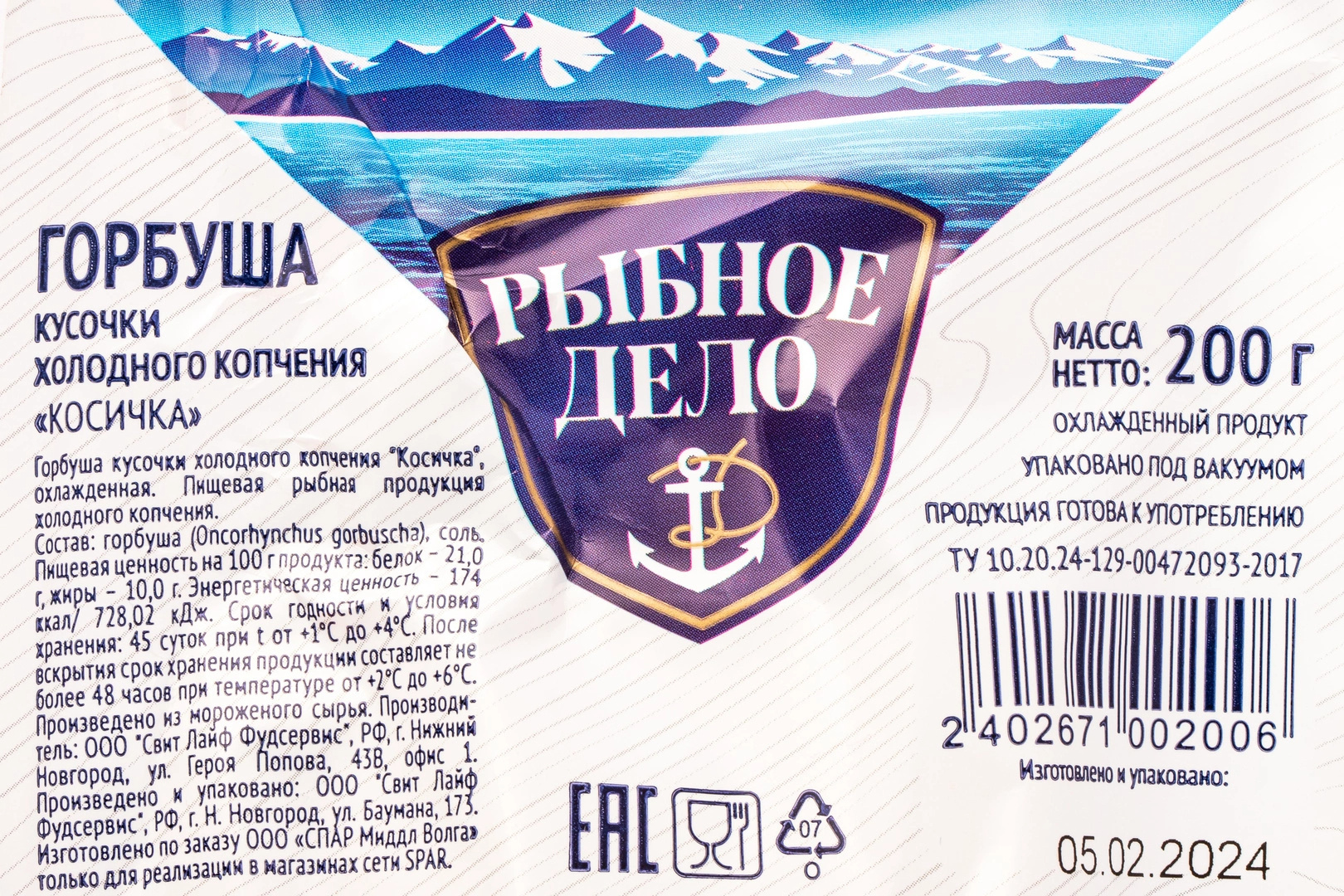 Горбуша Рыбное Дело Кусочки х/к Косичка 200г в/у