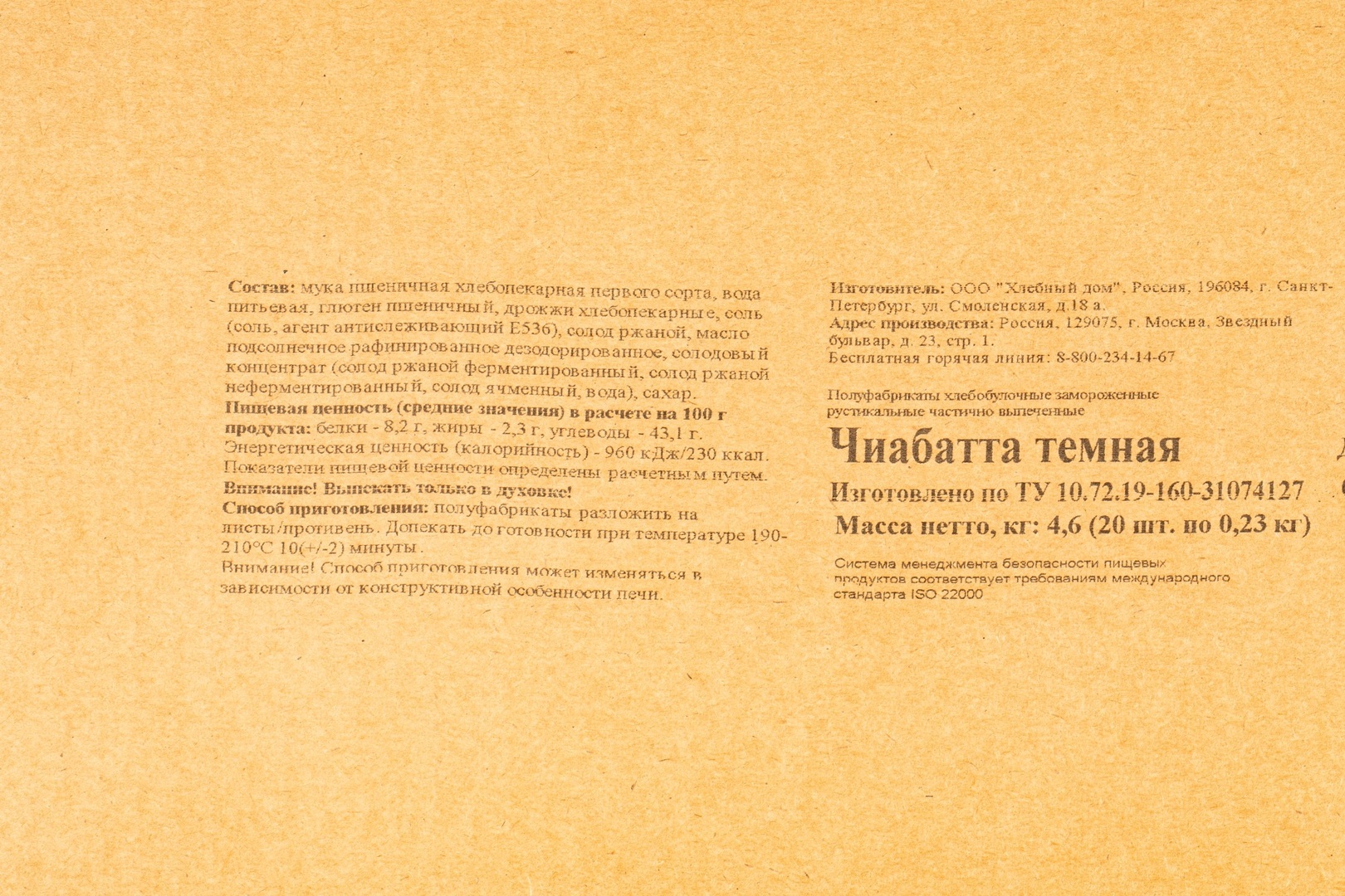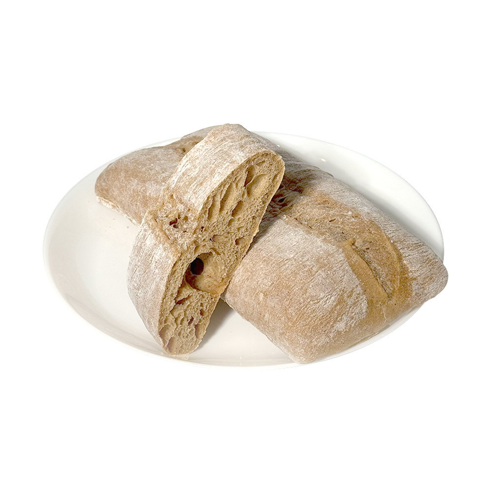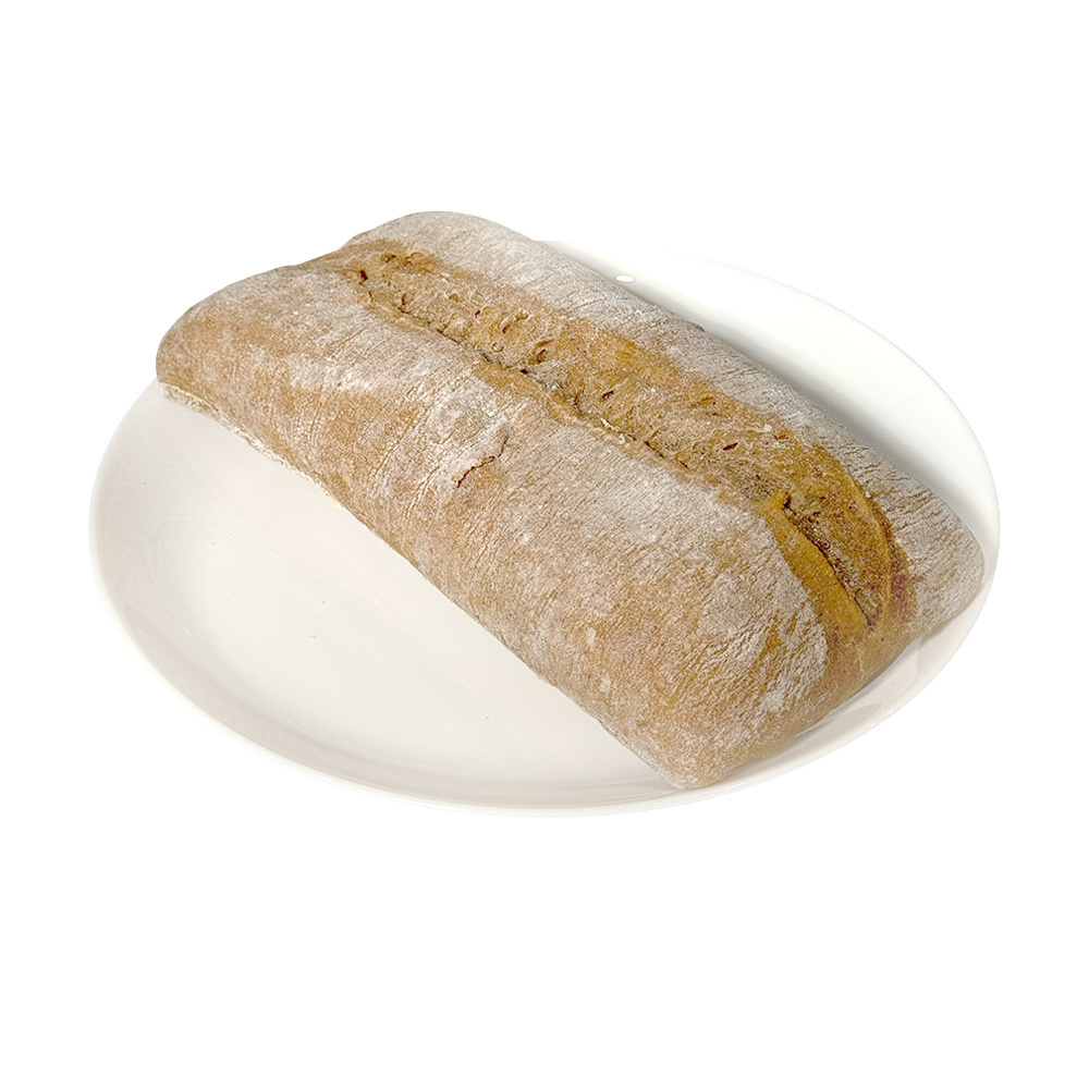 Невероятно мягкий итальянский пшеничный хлеб Чиабатта темная - душистая, с оригинальным вкусом за счет добавления ячменного солода. Обладает крупной пористостью и по-настоящему деревенской внешностью: продольный надрез, раскрывающий пористый мякиш, и присыпанная мукой хрустящая корочка.