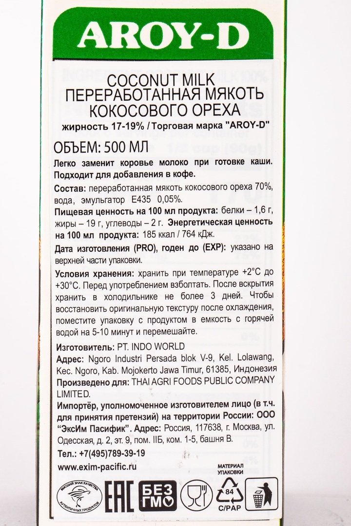 Кокосовое молоко AROY-D − натуральный продукт, способный заменить традиционное коровье молоко. Оно подходит для людей, придерживающихся веганского рациона или имеющих аллергию на молочные продукты. Напиток легко усваивается, по колчиеству витаминов и минералов ничуть не уступает любому другому молоку. Он тонизирует организм, помогает снять усталость. Его можно пить в чистом виде или добавлять в каши, десерты, напитки, мясные блюда и супы. Это молоко станет прекрасным дополнением к мороженому и кондитерскому крему, придаст им чудесный кокосовый аромат.