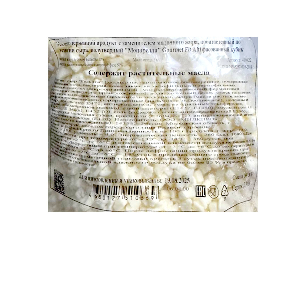 Продукт Молокосодержащий Alti Моцарелла Gurmet Fit Кубик 40% 1кг