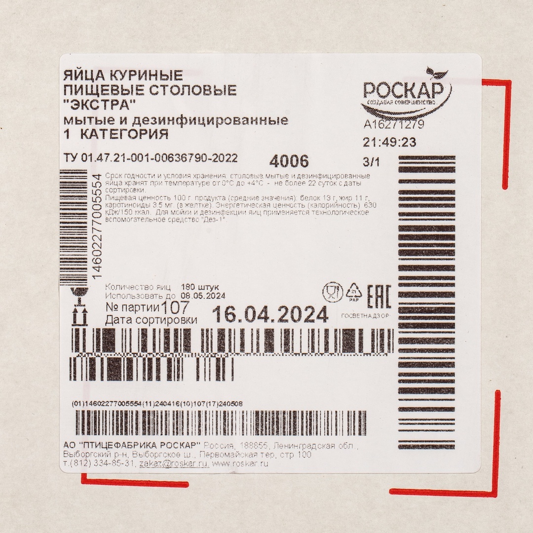 Яйцо Роскар Экстра Мытое Дезинфицированное С1 180шт
