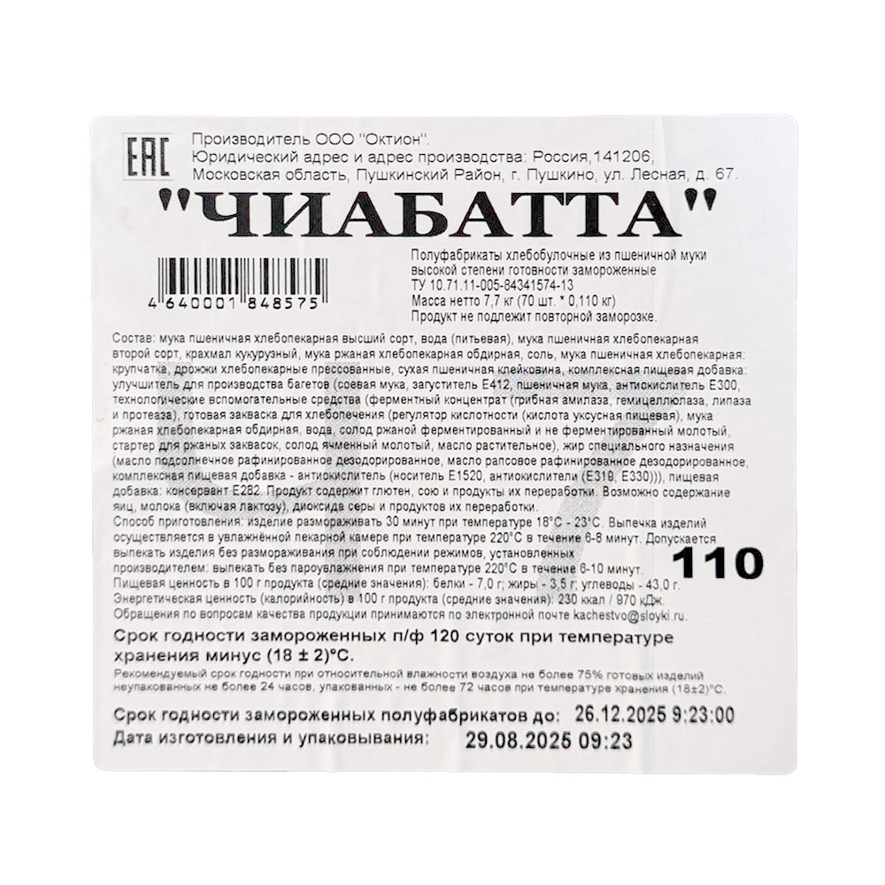 21.10.2025Очень хорошая чиабатта , не забитая . Готовится на гриле идеально