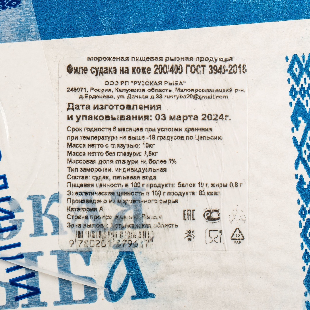 Филе Судака на Коже Свежемороженое 400г + 10кг