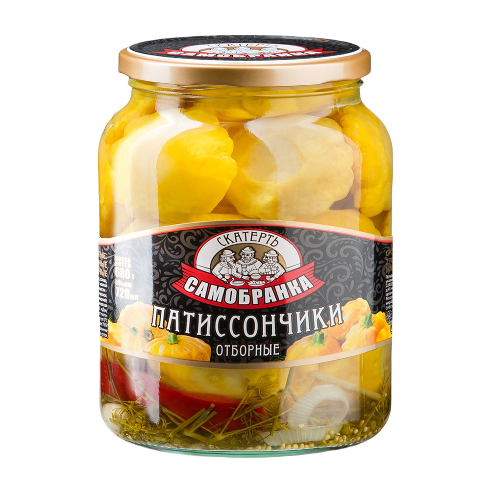 Маринованные патиссончики Скатерть Самобранка — отличный выбор для ярких и насыщенных блюд. Они придадут новый вкус салатам, гарнирам и горячим закускам. Удобная упаковка 720мл позволяет легко хранить и использовать продукт. Идеально подходит для добавления в кулинарные шедевры и украшения стола.