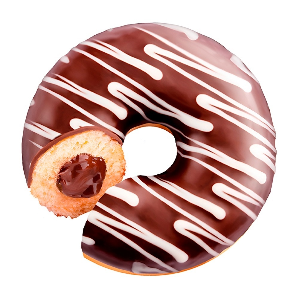 Идеальный выбор для сладкоежек и любителей шоколада. Этот нежный донат с шоколадной начинкой станет отличным дополнением к чашке кофе или чая, а также прекрасным завершением любого приёма пищи. Прекрасно подойдёт для перекуса в течение дня или в качестве сладкого угощения на праздничном столе.