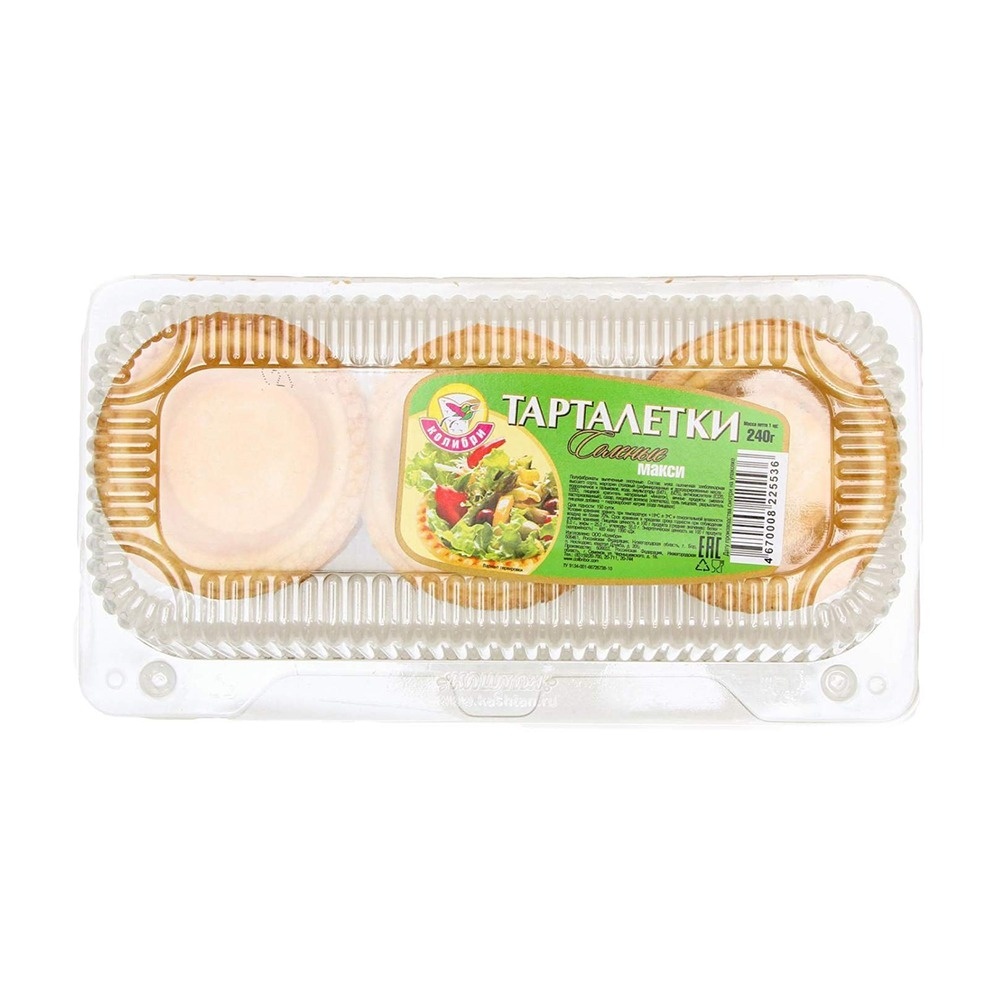 Идеальны для фуршетов и праздничных столов! Эти крупные солёные тарталетки станут прекрасной основой для ваших кулинарных шедевров. Они отлично подойдут для подачи разнообразных начинок — от классических до самых изысканных. Превосходный выбор для закусок с сыром, ветчиной, овощами или икрой.