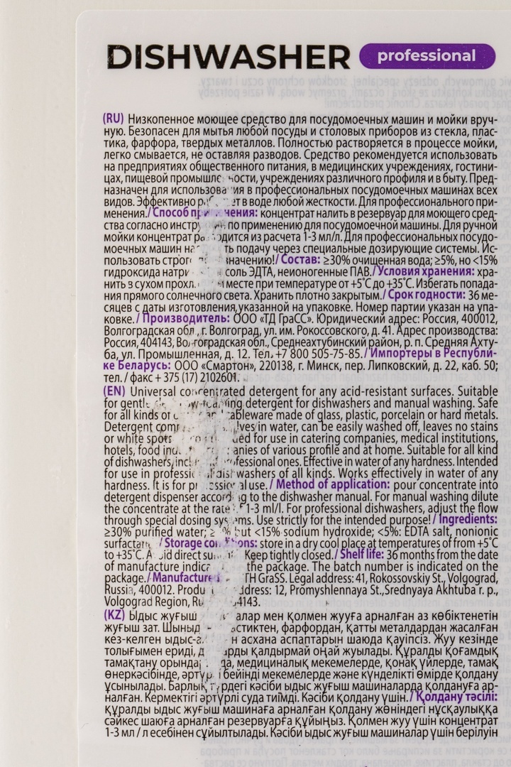 Низкопенное моющее средство для посудомоечных машин и мойки вручную. Безопасен для мытья любой посуды и столовых приборов из стекла, пластика, фарфора, твердых металлов. Полностью растворяется в процессе мойки, легко смывается, не оставляя разводов. Средство рекомендуется использовать на предприятиях общественного питания, в медицинских учреждениях, гостиницах, пищевой промышленности, учреждениях различного профиля и в быту. Предназначен для использования в профессиональных посудомоечных машинах всех видов. Эффективно работает в воде любой жесткости. Для профессионального применения.