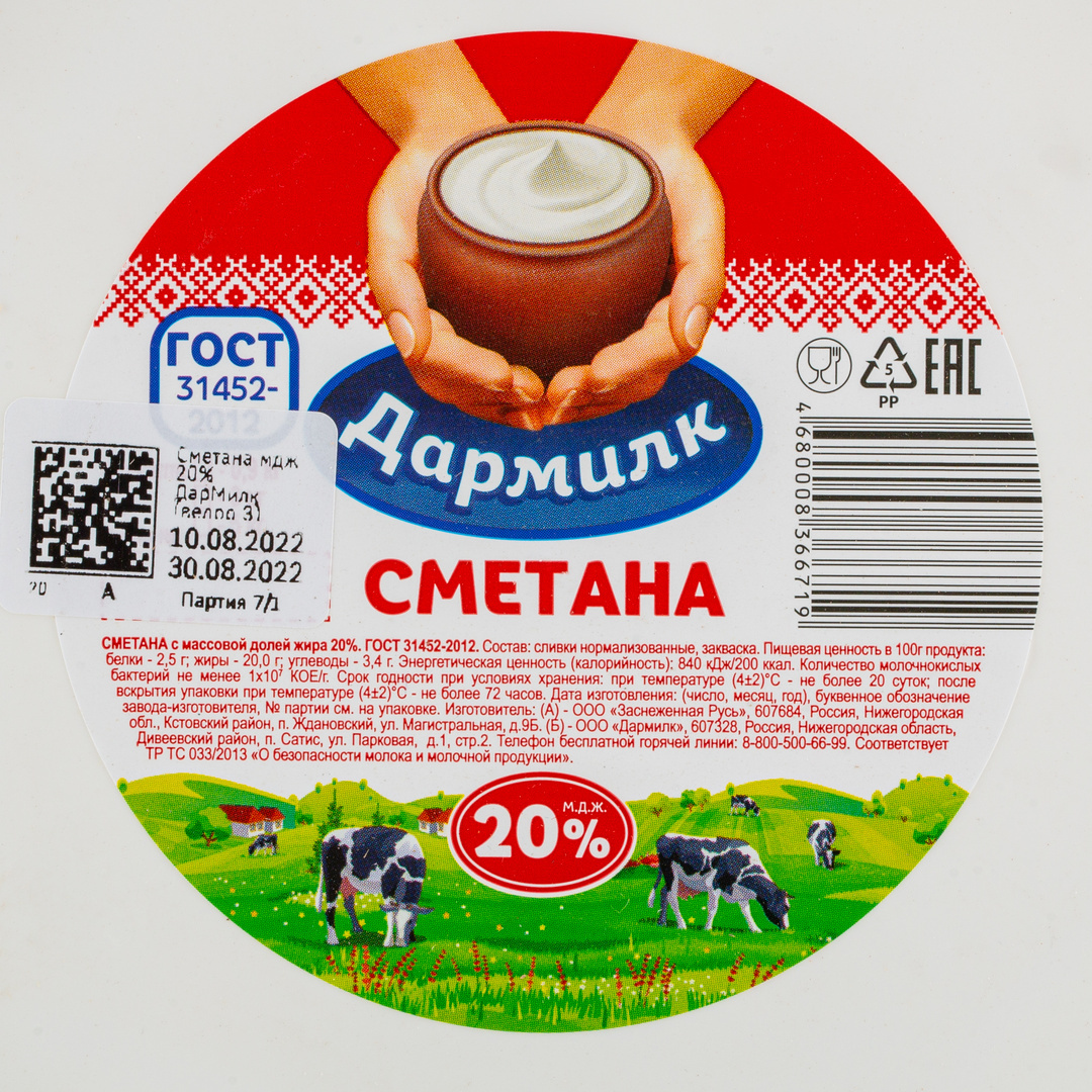 Сметана ГОСТ 20% ~ 3 кг