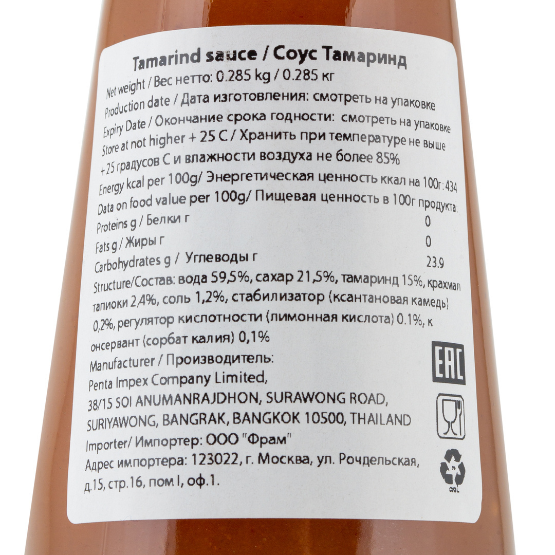 Тамариндовый соус Thai Boy – яркий насыщенный кисло-сладкий соус, приготовленный по эксклюзивной рецептуре ResFOOD на основе тамаринда, также называемого индийским фиником. Тамаринд - это бобовое растение, его плоды имеют ярко выраженный кислый вкус и являются богатым источником витамина С и антиоксидантов.