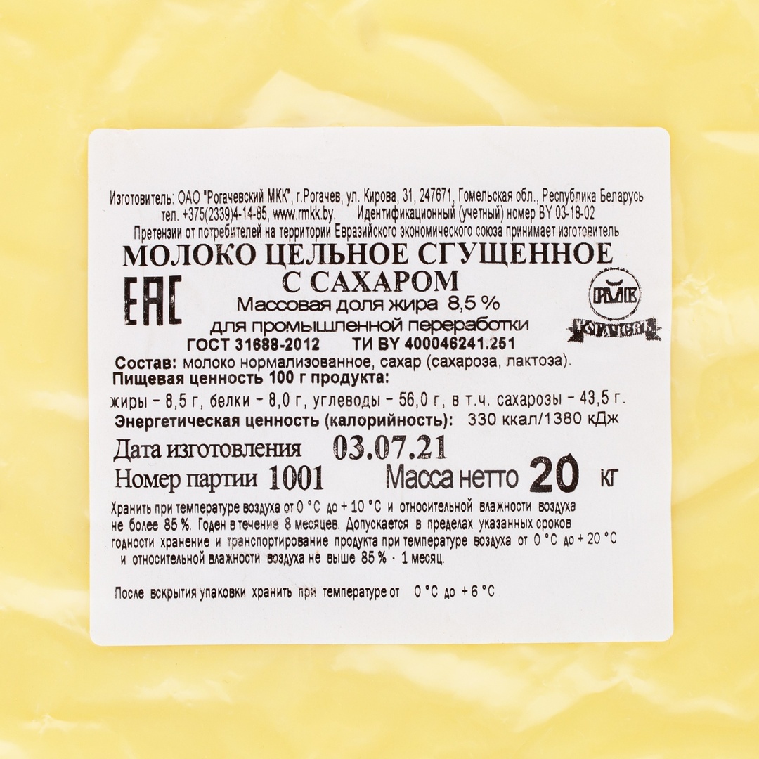 Молоко Сгущенное Рогачев Цельное 8,5% ГОСТ 20кг