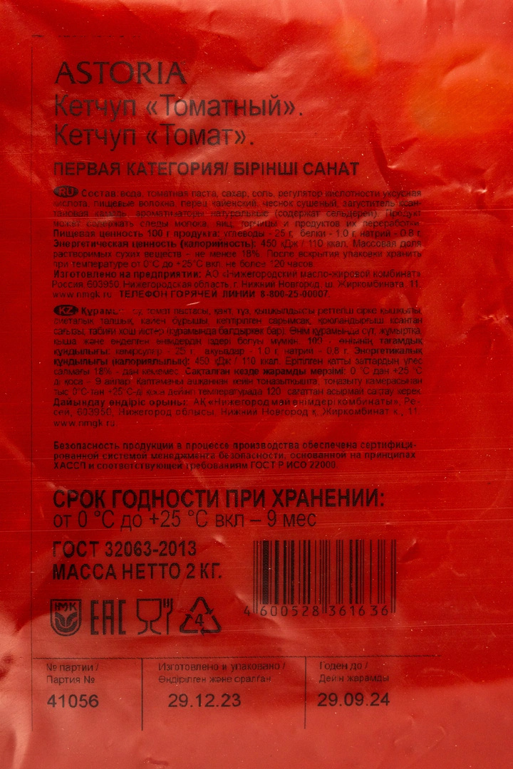 Идеальный выбор для тех, кто ценит насыщенный вкус и аромат — кетчуп Astoria томатный. Он станет отличным дополнением к мясным и овощным блюдам, а также украсит своим вкусом пиццу, хот-доги и бургеры. Удобная упаковка 2кг подойдёт для большой семьи или для приготовления пищи в больших объёмах.