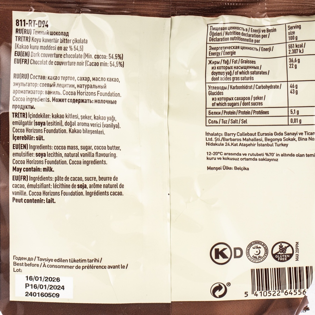 Шоколад Темный 54,5% 0,4 кг Barry-callebaut