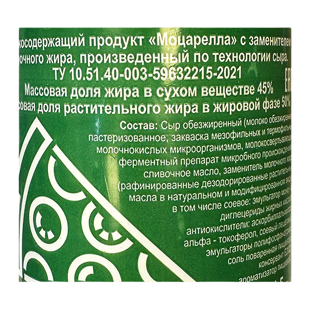 Продукт Молокосодержащий Моцарелла по Технологии Сыра ЗМЖ 45% 1,5кг