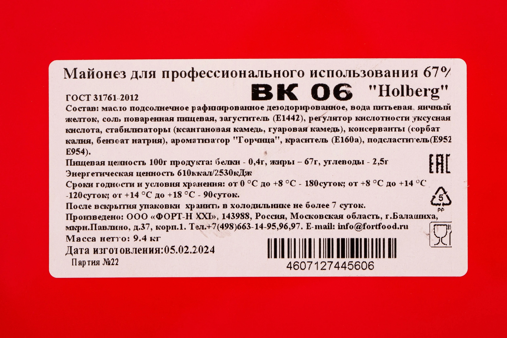 Идеален для приготовления разнообразных блюд — от салатов до горячих закусок. Благодаря густой консистенции и насыщенному вкусу майонез Holberg 67% станет отличным дополнением к вашим кулинарным шедеврам. Подходит для ежедневного использования и больших кулинарных проектов. Объём 10 литров обеспечит его длительное использование.