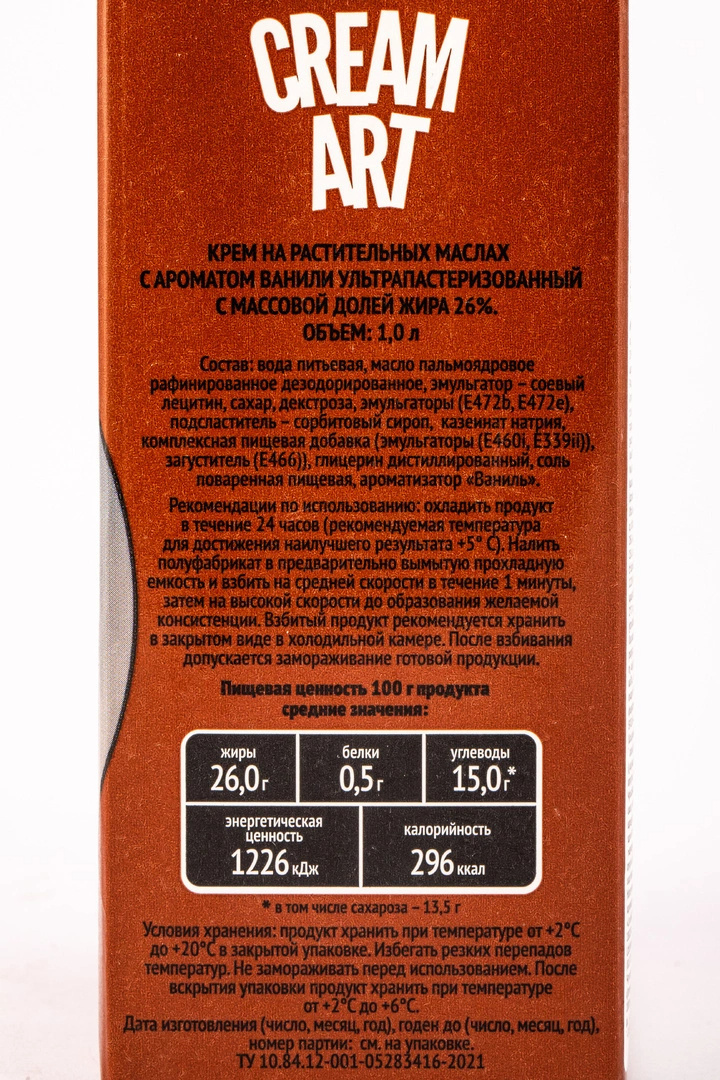Крем на Растительных Маслах Cream Art Аромат Ванили 26% 1л