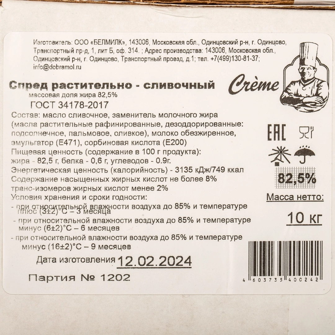Спред Растительно-Сливочный Creme 82,5% 10кг