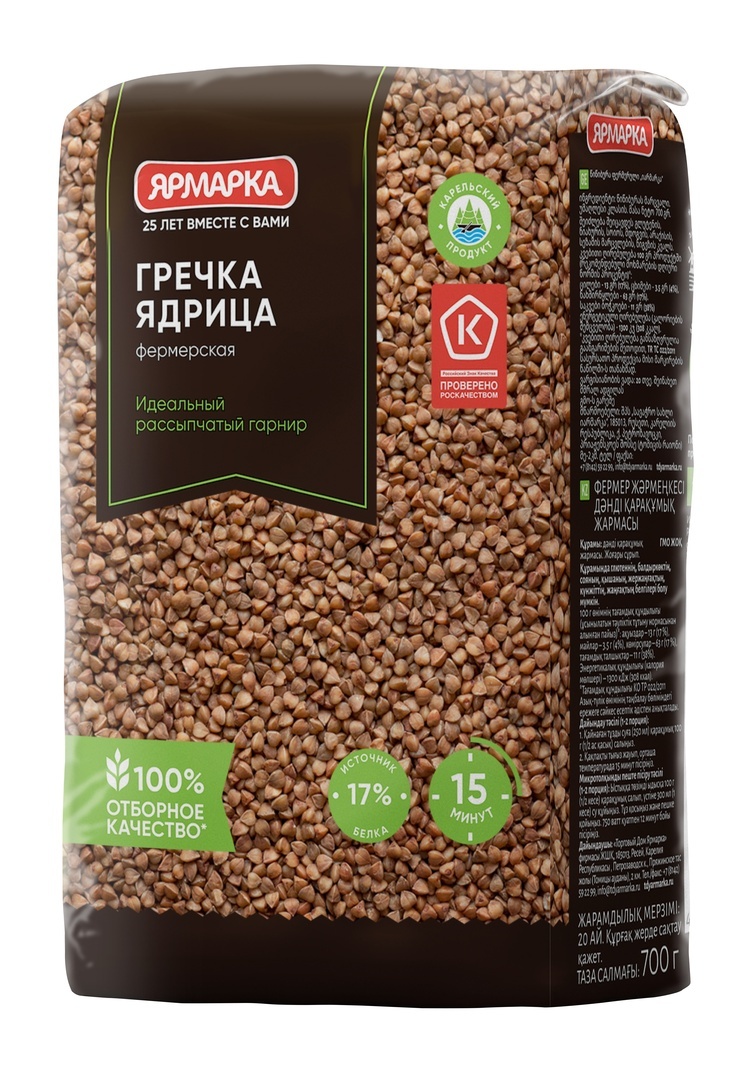 Гречка ядрица «Ярмарка» - высшего качества. Имеет насыщенный коричневый цвет.