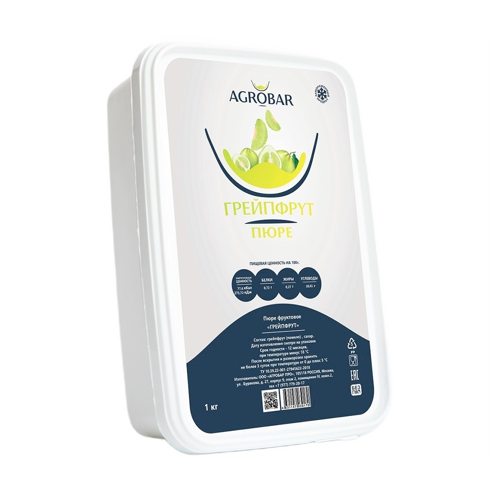 Пюре Agrobar Грейпфрут Замороженное 1кг