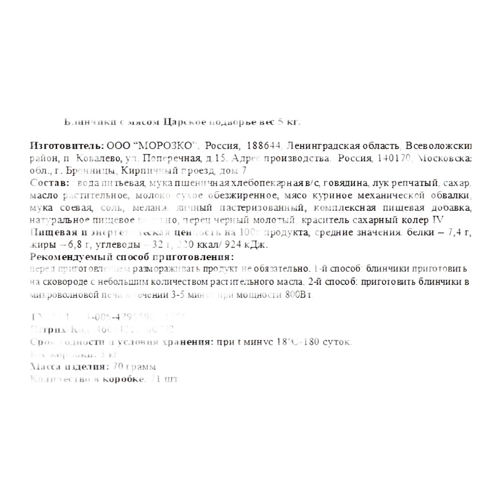 Блинчики Царское Подворье с Мясом Замороженные 71*70г 5кг