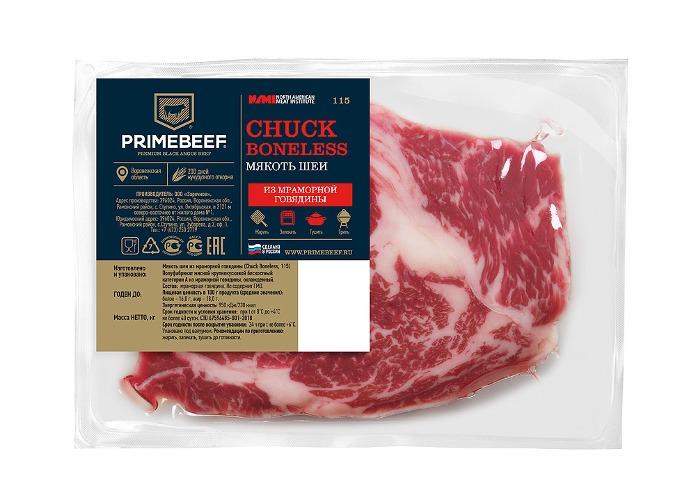 Мякоть шея мраморная говядина замороженная - 700 г