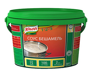 Knorr Professional Соус Бешамель Сухая смесь (1,8 кг) - это классический белый соус с традиционным вкусом, идеально гладкой текстурой и стабильным результатом. У Вас на кухне всегда будет белый соус постоянного качества, приготовленный по классической рецептуре. Прекрасно сочетается с мясом, грибами и овощами, подходит для запекания, приготовления лазаньи, жульенов и пасты.Помогает сэкономить время при приготовлении большого количества блюд. Экономично. Легко и быстро. Высокое качество, стабильный результат.1. Разведите 100 г соуса в 200 мл холодной воды, размешайте и оставьте на 2 минуты. 2. Добавьте в получившуюся массу еще 800 мл воды 3. На плите, равномерно помешивая, доведите соус до состояния готовности.