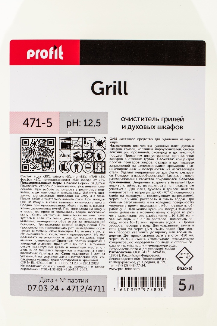 Средство для чистки грилей и духовых шкафов «Profit Grill» - 5 л