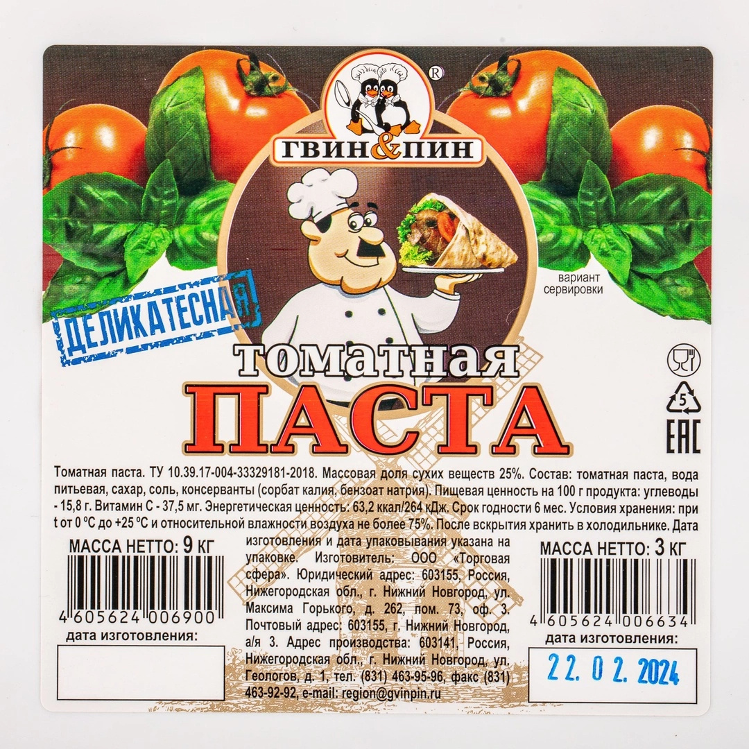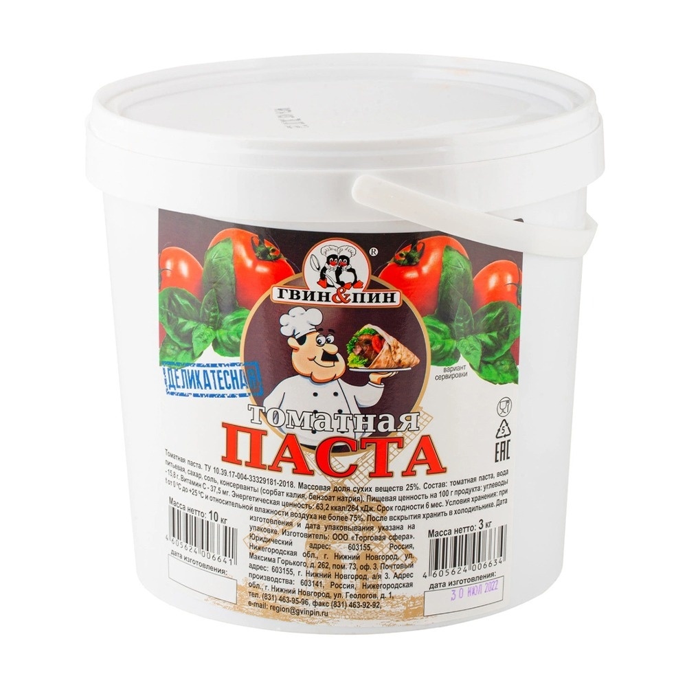 Для приготовления вкусных соусов, супов, подлив и других блюд понадобится томатная паста Гвин Пин Деликатесная. Она придаст вашим кулинарным шедеврам насыщенный цвет и яркий вкус. Удобная упаковка весом 3кг подойдёт для частого использования и позволит вам готовить с удовольствием.