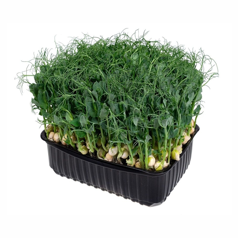 Горох зелёный– один из вкусных и необычных видов микрозелени. У него хрустящие зелёные ростки и сочные завивающиеся «усики». Эта популярная кудрявая микрозелень особенно полюбилась шеф-поварам. Поэтому её часто применяют для украшения блюд, пользующихся спросом в кафе и ресторанах.