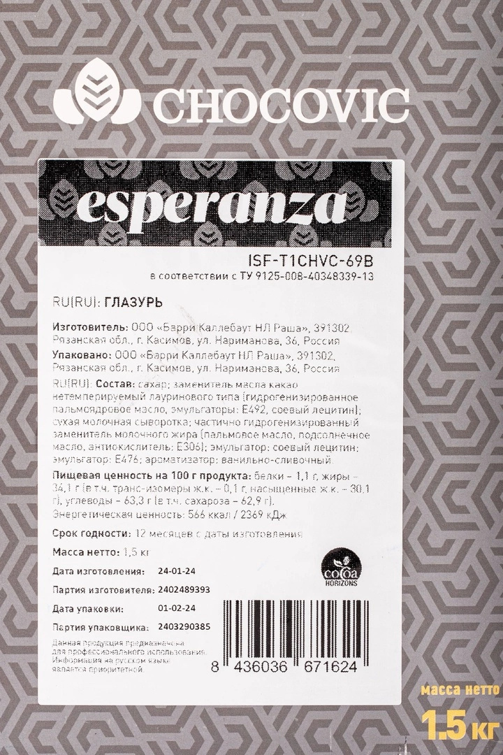 Глазурь Белая Chocovic Esperanza 1,5кг