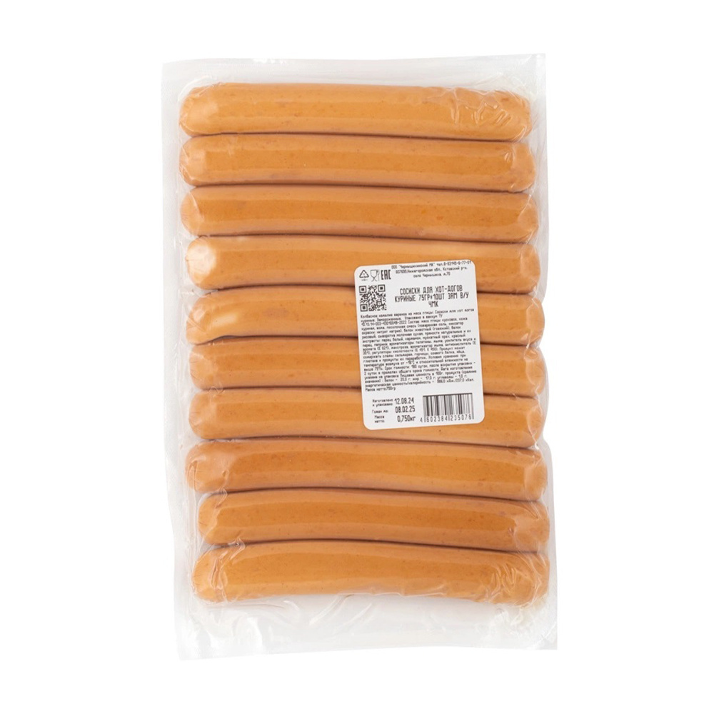 Сосиски Куриные для Хот-Догов Замороженные Чернышихинские Колбасы 17см 10*75г в/у