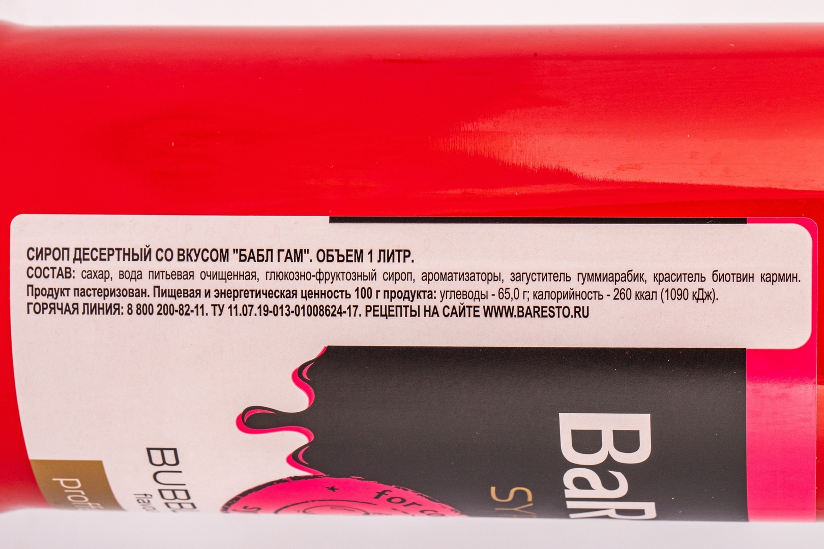 Сироп Baresto Бабл-гам объёмом 1 литр — для тех, кто любит яркие вкусы. Подходит для добавления в кофе, чай, молочные коктейли и другие напитки. Может послужить основой для десертов или ингредиентом в кулинарных экспериментах. Отлично дополнит мороженое или выпечку. Превратит обычное блюдо в необычное.