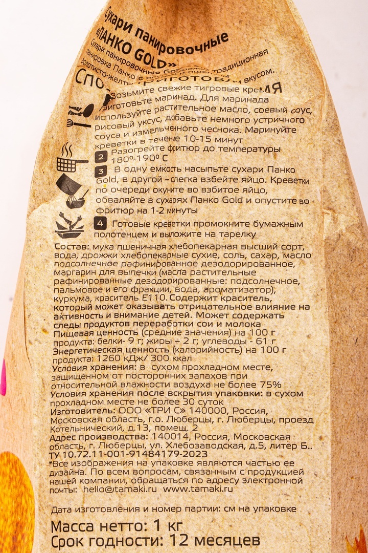 Сухари панировочные панко Gold Tamaki - отличный выбор для создания хрустящего и аппетитного слоя на мясе, рыбе или овощах.