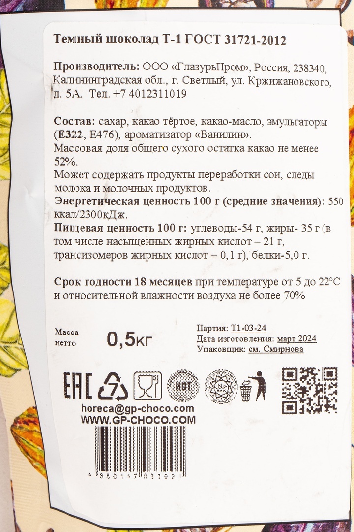 Темный шоколад Т-1 предназначен для глазирования кондитерских изделий, производства готовых форм из шоколада. Растопленный шоколад температурой 45С, должен быть оттемперирован