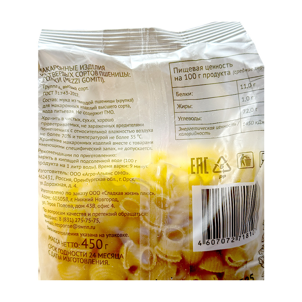 Макаронные Изделия Рожки 450г Сладкая Жизнь