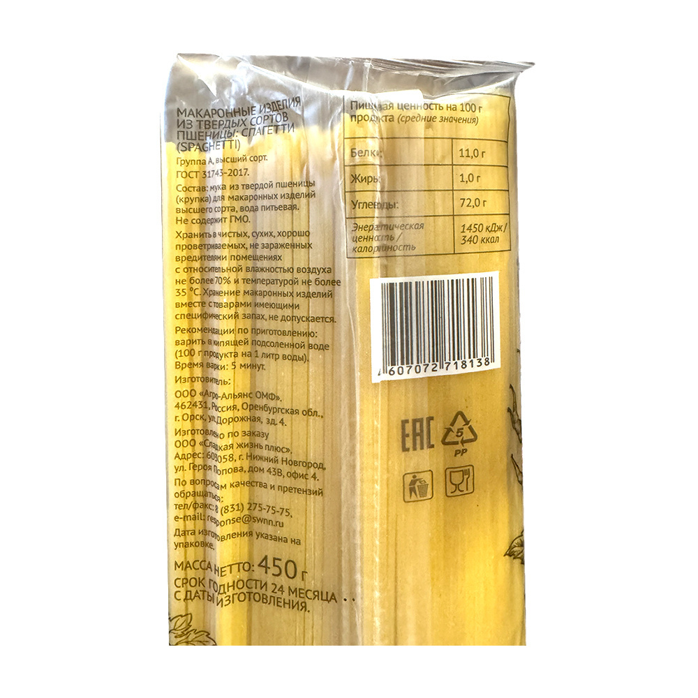 Макаронные Изделия Спагетти 450г Сладкая Жизнь