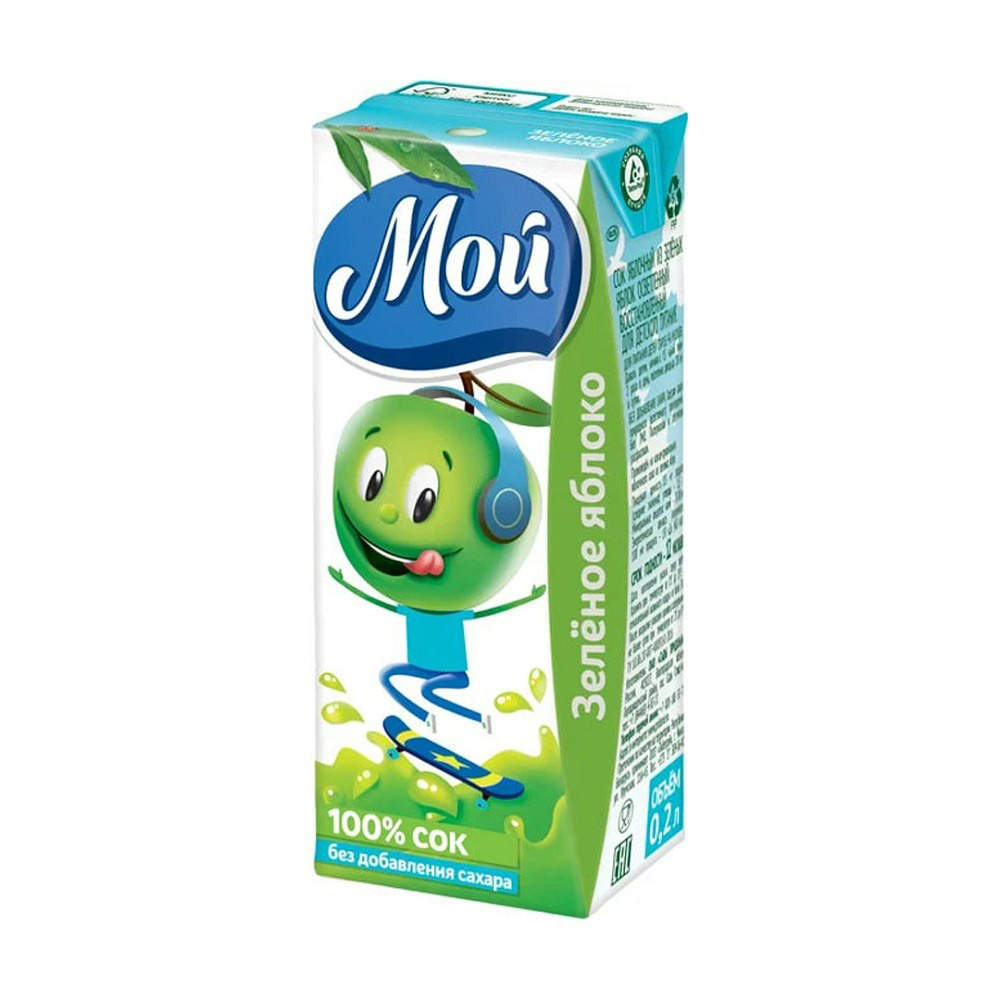 Сок Мой со вкусом зелёного яблока — это освежающий напиток, который подходит для ежедневного употребления. Он порадует вас своим натуральным вкусом и ароматом. Этот сок станет отличным выбором для завтрака или перекуса в течение дня.
