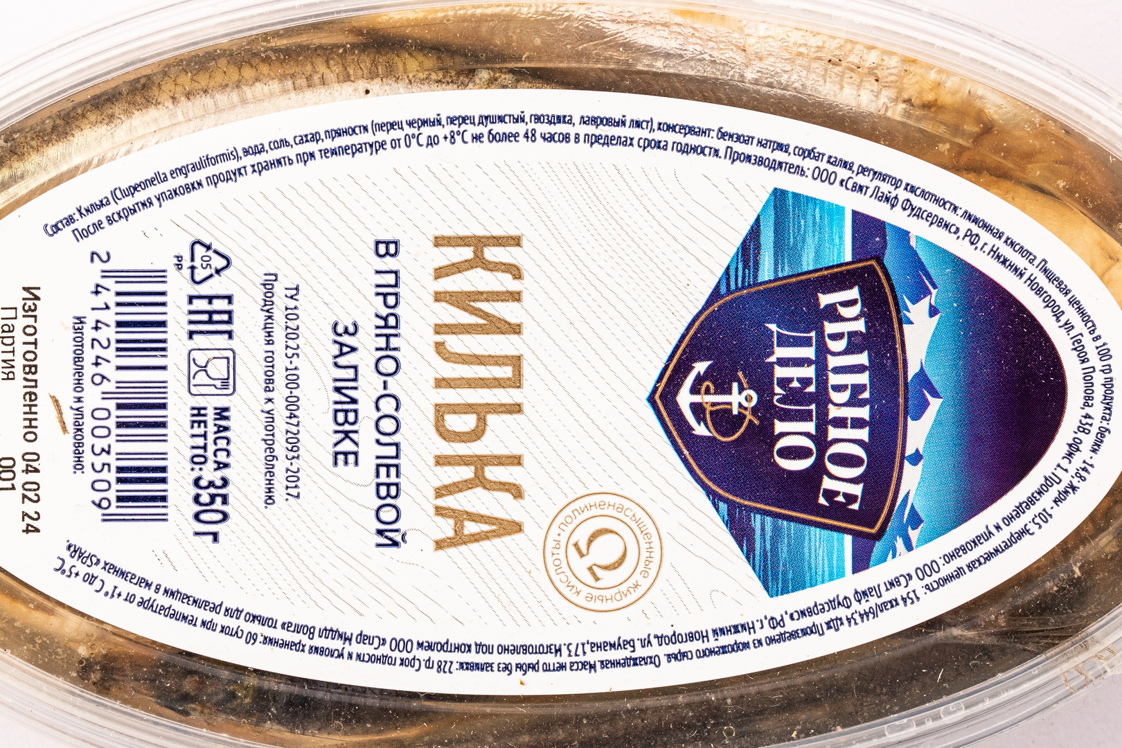 Килька Рыбное Дело в Пряно-Солевой Заливке 350г