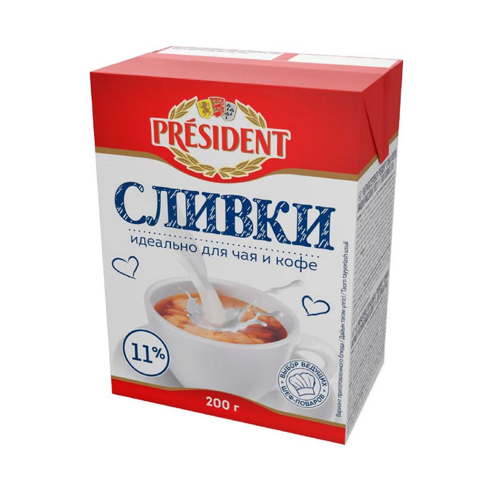 Сливки Питьевые President Ультрапастеризованные 11% 200г