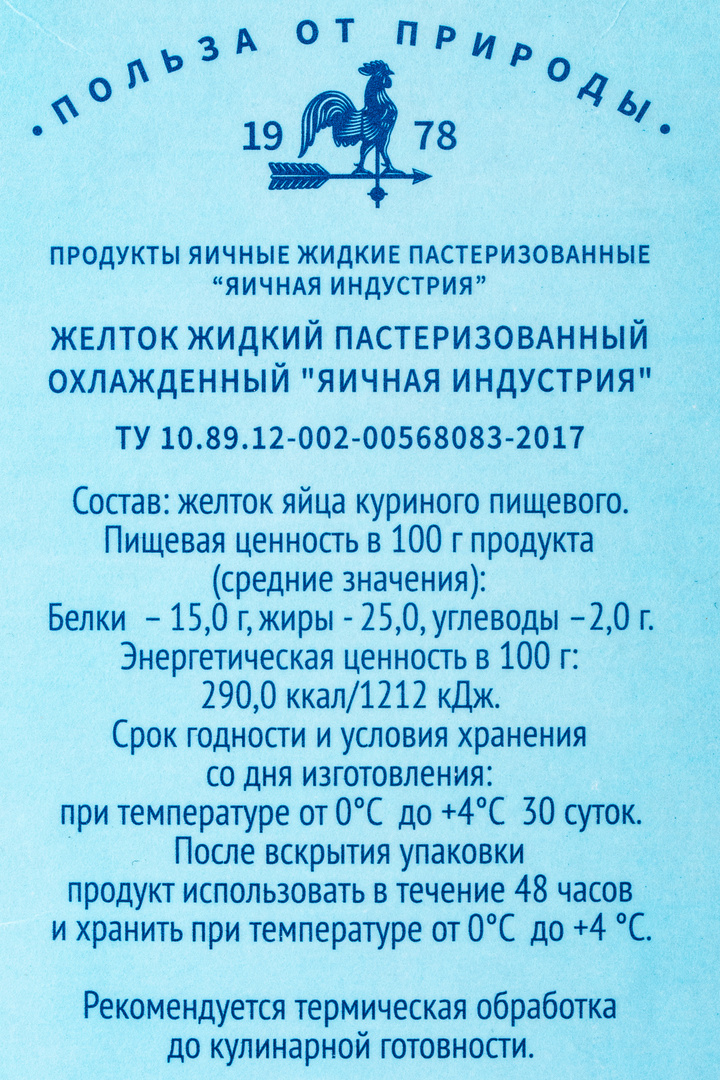 Желток Волжанин Пастеризованный Охлажденный 1кг пюр-пак