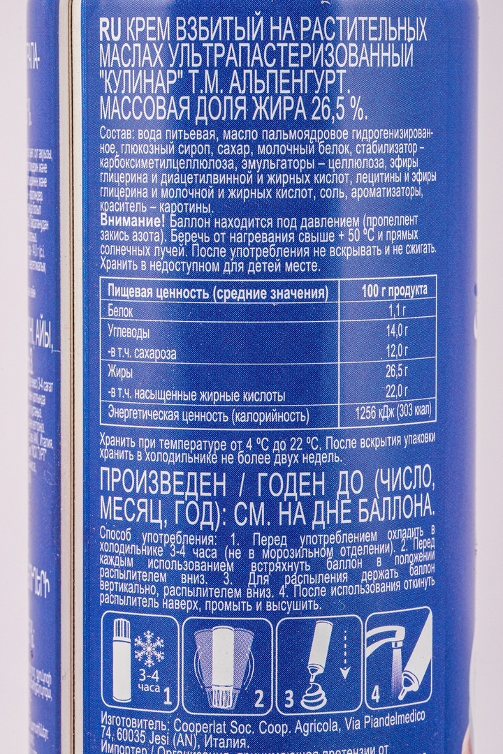 Крем Взбитый Альпенгурт Кулинар 26,5% 250г