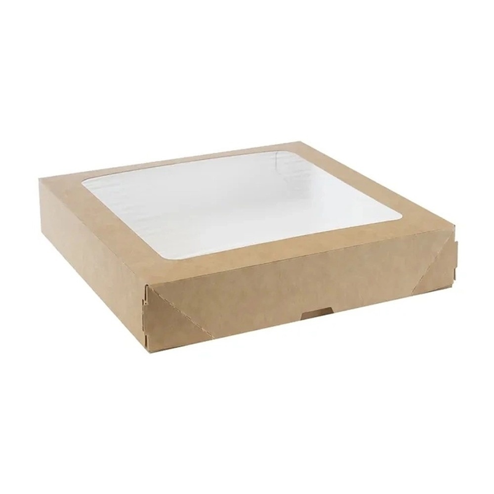 Для хранения и транспортировки продуктов подойдёт удобный контейнер с окном. Он удобен для организации пространства в холодильнике или шкафу, а также для сервировки стола. Объём контейнера — 1500мл, размеры — 200x200x50мм. В упаковке 150 штук.