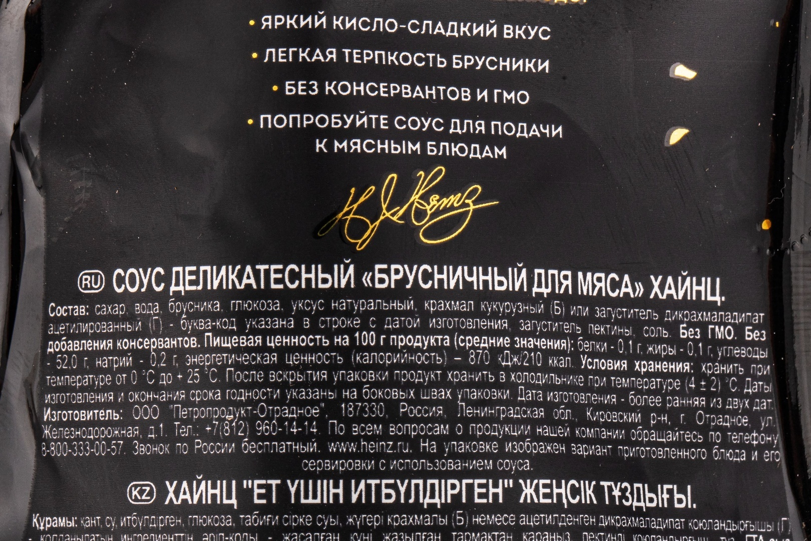 Соус Heinz Брусничный для Мяса 200г дой-пак
