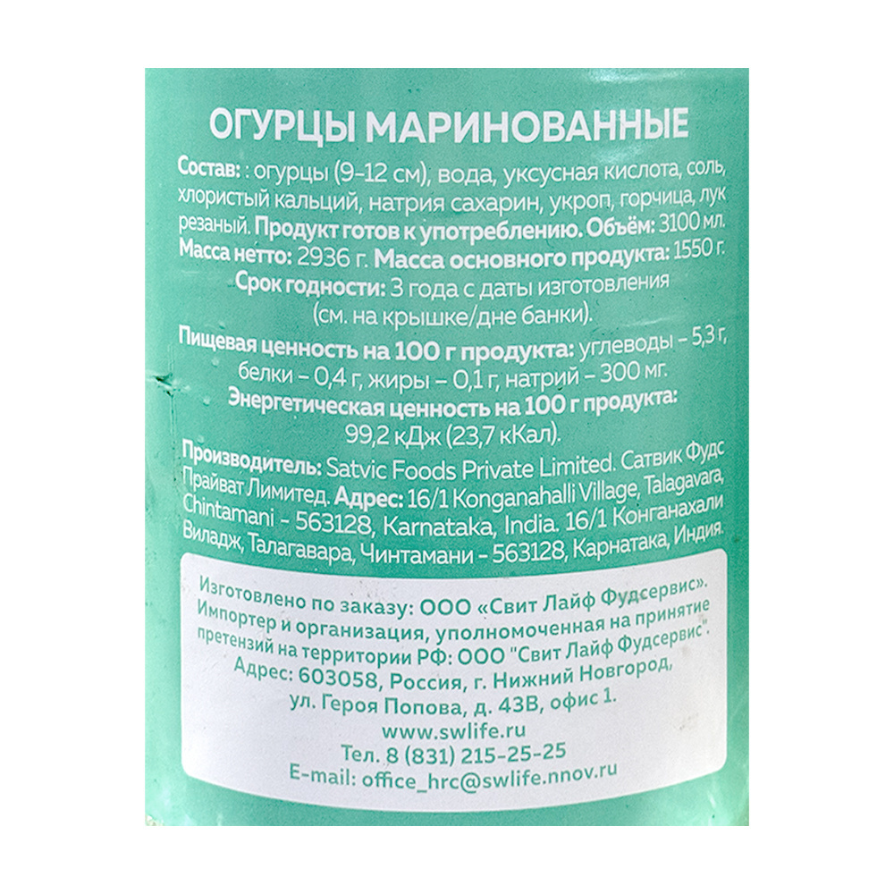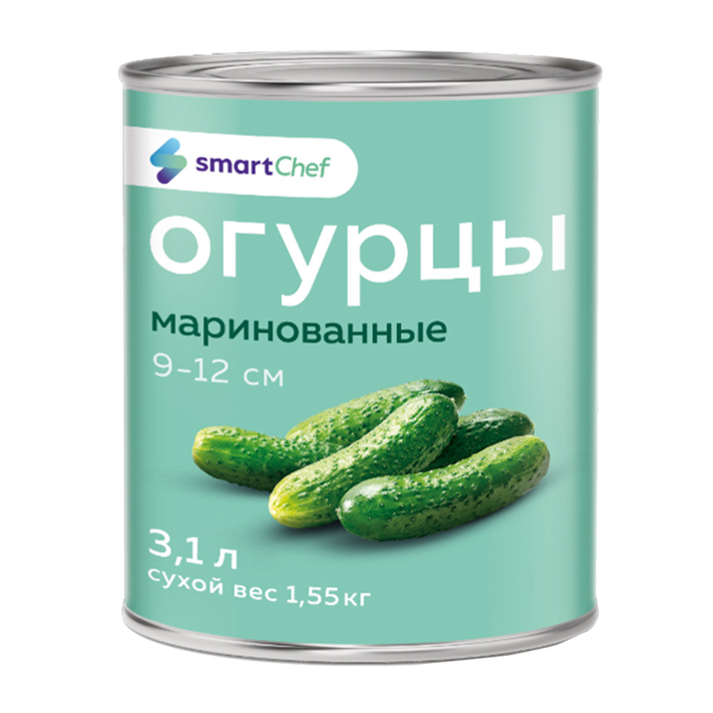 Огурцы Smart Chef Маринованные 9-12см Индия 3,1л Сухой Вес 1,55кг ж/б