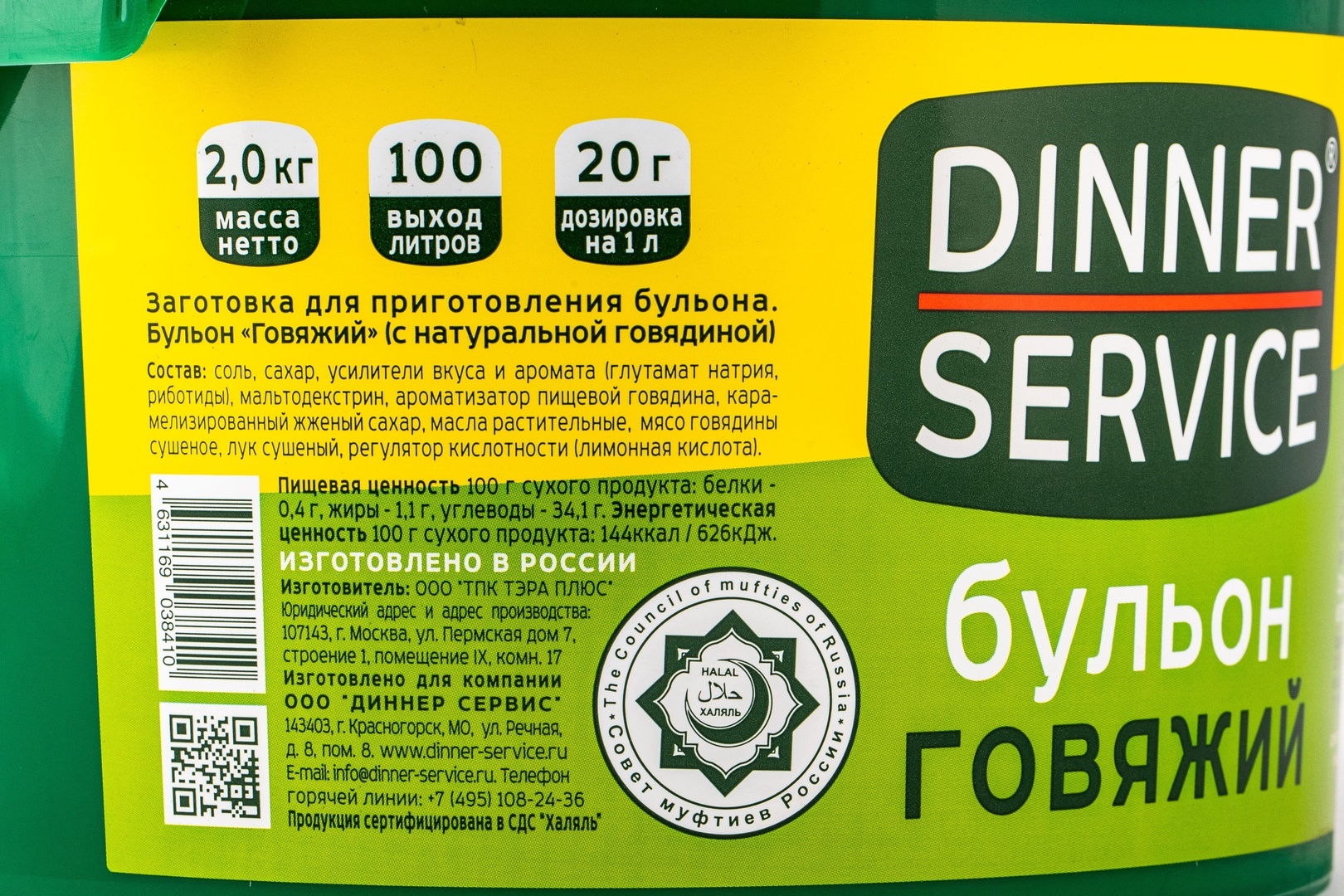 Идеальный выбор для приготовления ароматных супов, соусов и других блюд — бульон Dinner Service говяжий халяль. Он добавит насыщенный вкус и глубокий аромат вашим кулинарным шедеврам. Удобная упаковка 2кг подойдёт как для домашнего использования, так и для общепита.