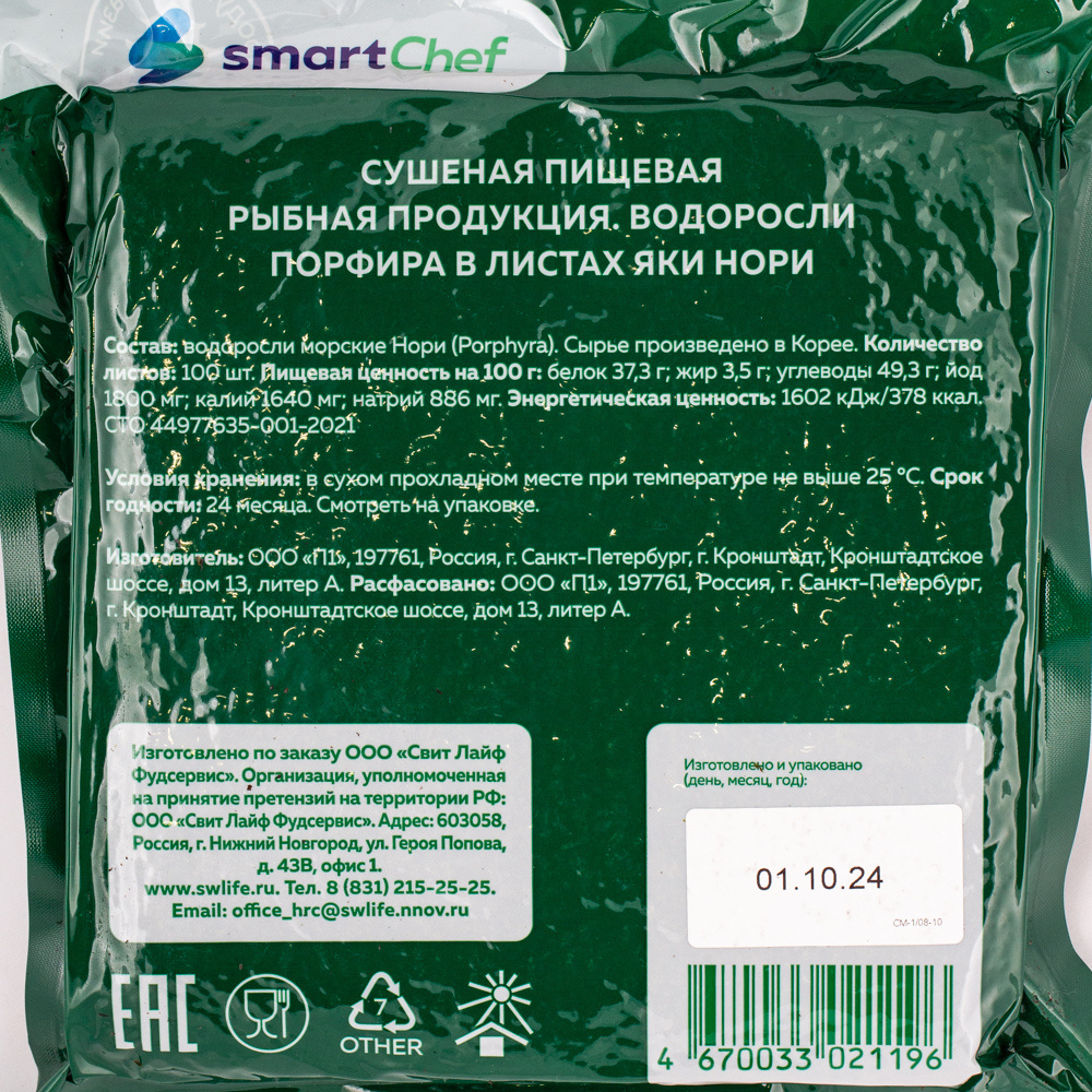 Жареные водоросли нори Smart Chef — это идеальный выбор для приготовления суши и роллов. Также они могут стать хрустящей добавкой к салатам, закусками и гарнирам. 100 листов в упаковке обеспечат вас запасом на долгое время.